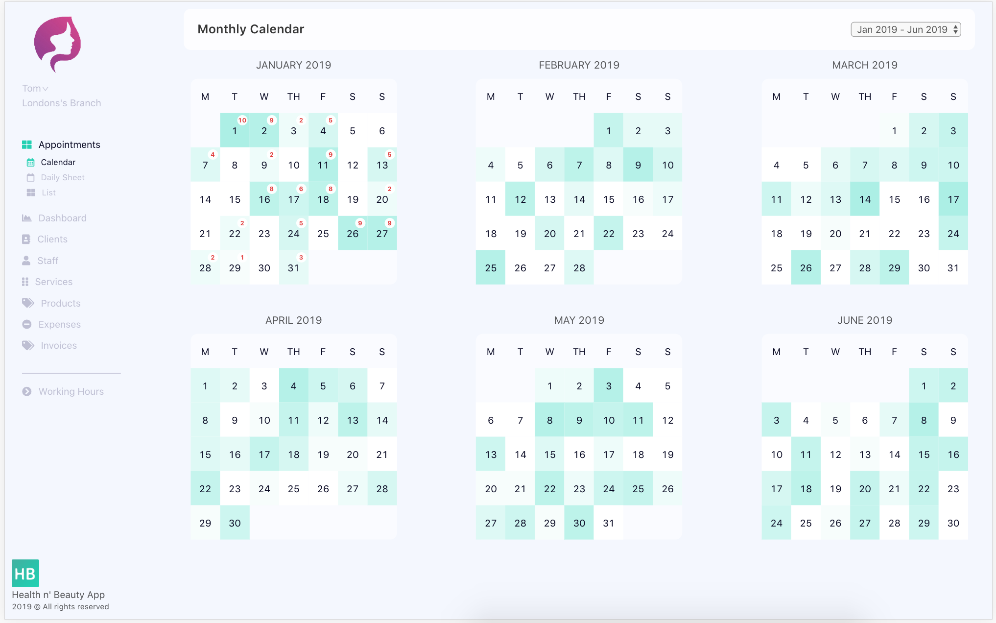 Track the working hours for each of your staff and manage part time stylist easily using the Health n' Beauty mobile app.